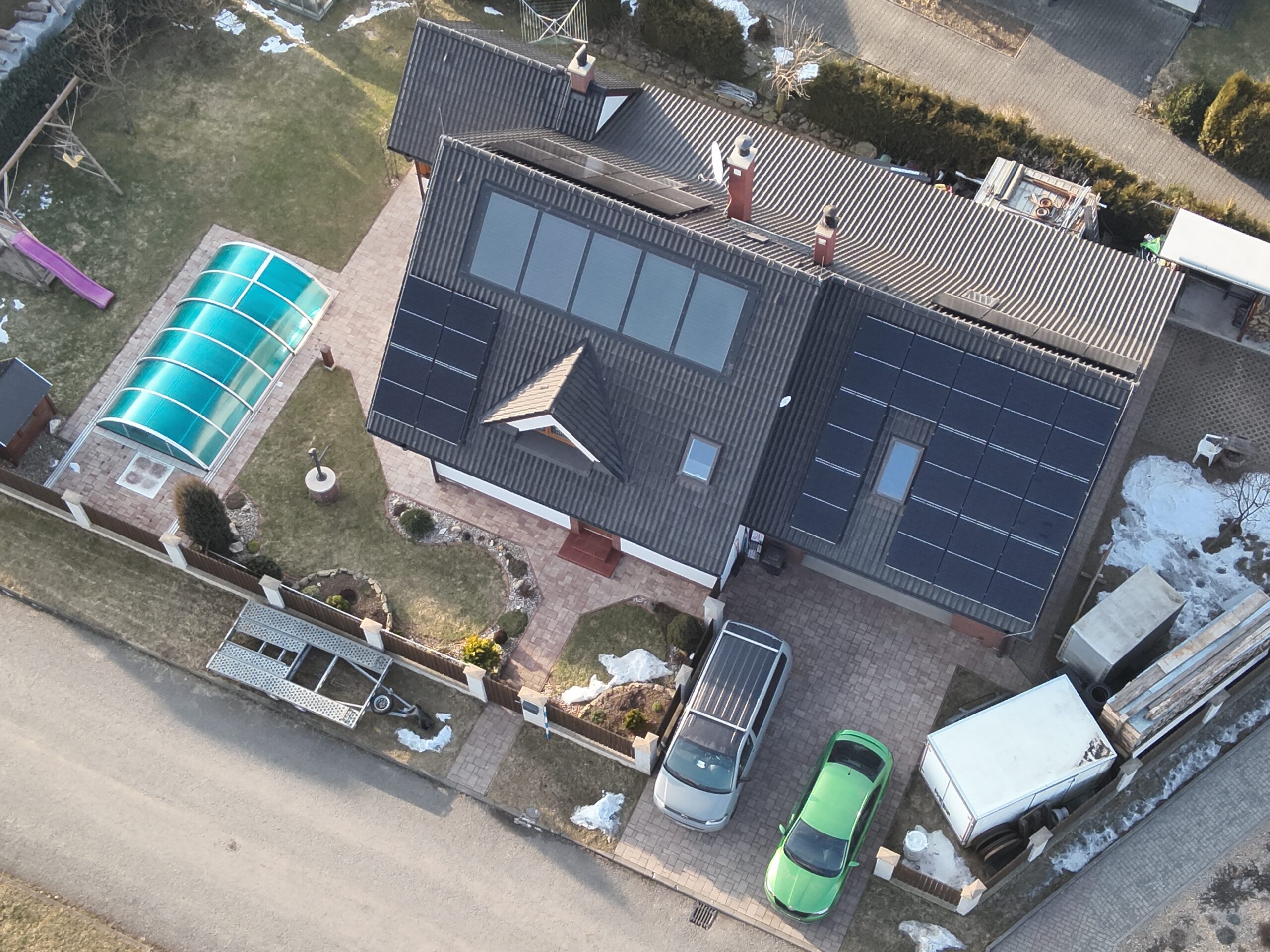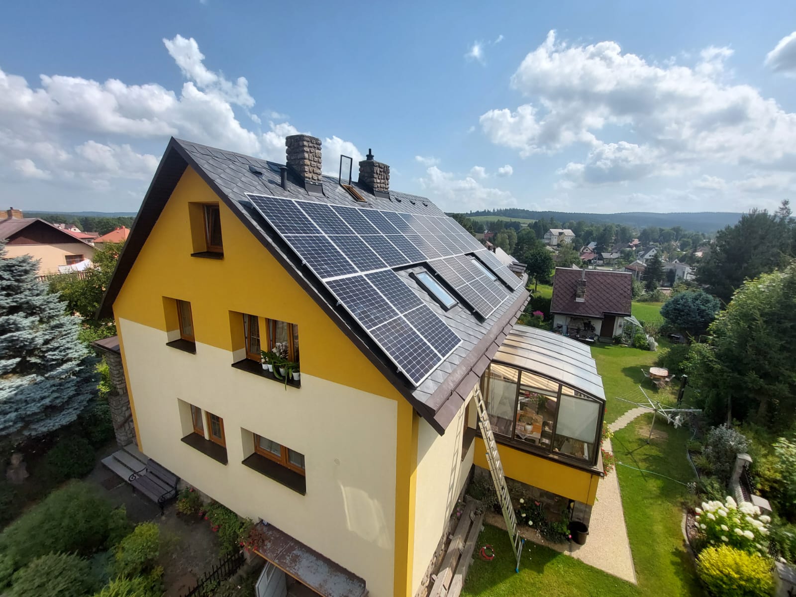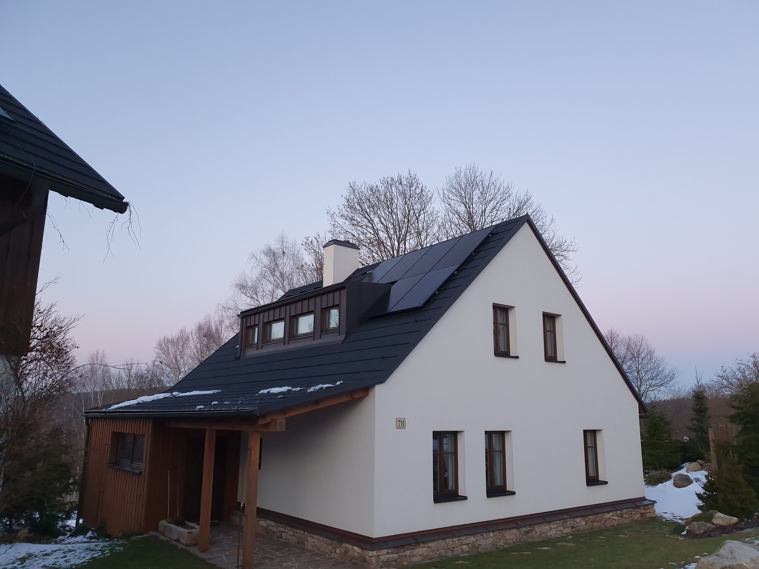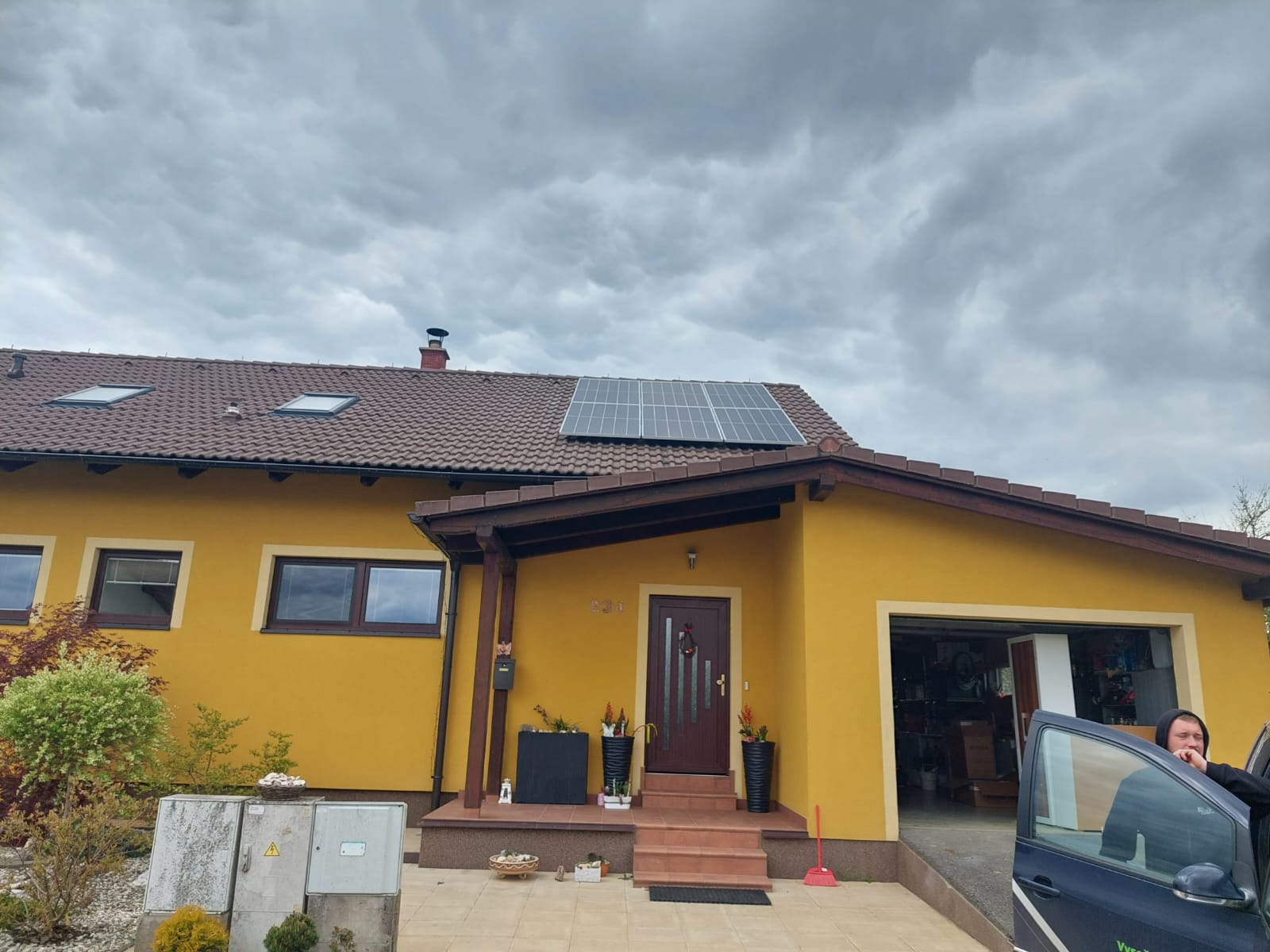 Instalace FVE o výkonu 4,5kW, střídač Solax X3 hybrid 10 kW baterie triple power 9 kW. Instalace pro snížení elektrické spotřeby domu včetně všech dodávek, projektové dokumentace a zpracování žádosti na NZU na klíč.